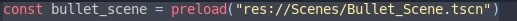 Take a look at the above line of code. Here we preload a scene into our character script. This is the bullet scene we use to create a bullet when our character fires his weapon. We preload the scene because we don’t use it yet at this point. We know that we will be using it in this script and that is why we preload a reference to the scene.
