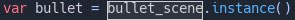 This is how we actually create an instance from the scene we preloaded. After we pre-loaded a scene and created an instance of the scene, we can then work with the scene by referencing the bullet variable we have assigned the bullet_scene instance to. This can be done multiple times and saves us the effort of redoing all the code for the bullet scene every time we want to fire a bullet. It is best practice to save all your objects as scenes so that you can create instances of your objects and use them throughout the entire game without redoing the code for your object.